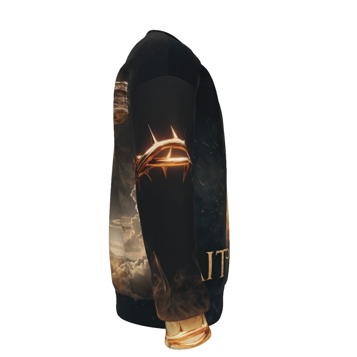 All-Over Print Unisex Drop-shoulder Knitted Fleece Sweater|DailyFits Faith Over Fear